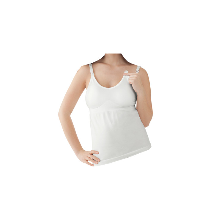 La lunghezza adattabile del top Medela permette di sovrapporlo ad altri abiti, per uno stile di vita attivo durante la gravidanza e l'allattamento. È realizzato in morbido cotone traspirante ed è privo di ferretti e cuciture. La semplice clip si apre e chiude con una sola mano, facilitando l'allattamento al seno.